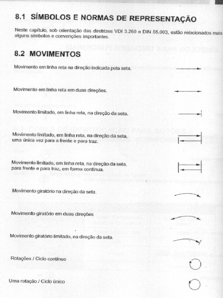 Il documento tratta dei simboli e delle norme di rappresentazione secondo le direttive VDI 3.260 e DIN 55.003, descrivendo vari movimenti e simboli per unità funzionali. Viene anche fornita una panoramica sui colori di identificazione per pulsanti e indicatori luminosi, oltre a dettagli sui vari tipi di energia e simboli pneumatici. Infine, il documento elenca diversi tipi di valvole e sistemi di azionamento, specificando le loro funzioni e rappresentazioni grafiche.