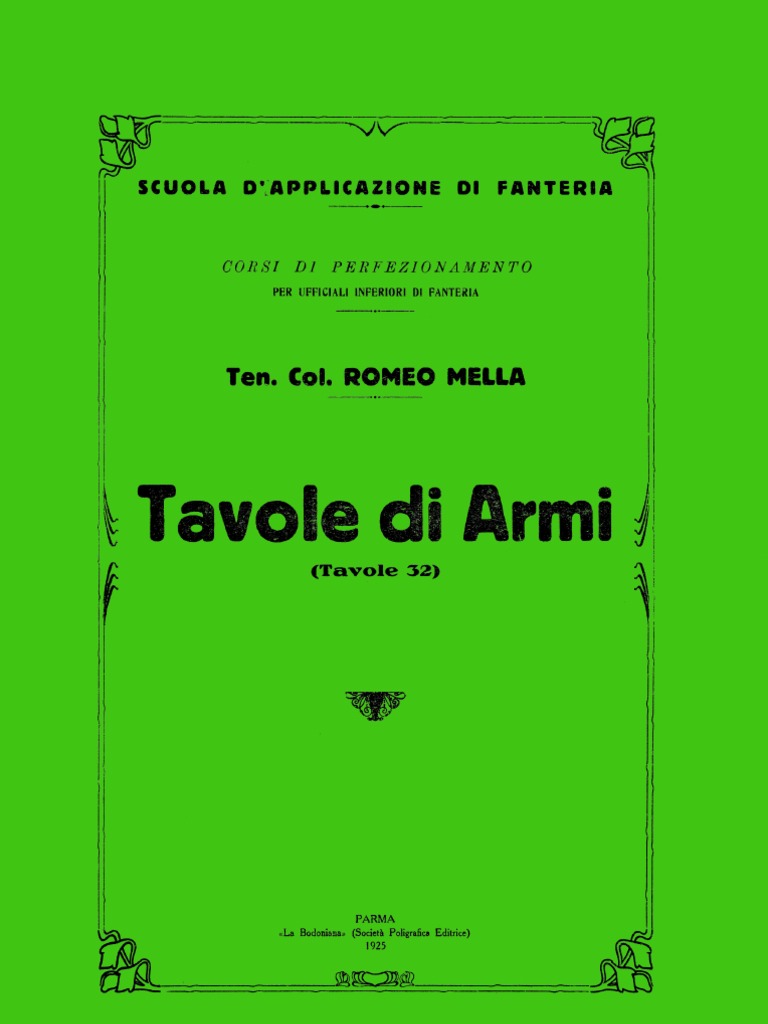 Tavole di armi, edizione 1925, del T.Col. Romeo Mella della Scuola d'Applicazione di Fanteria