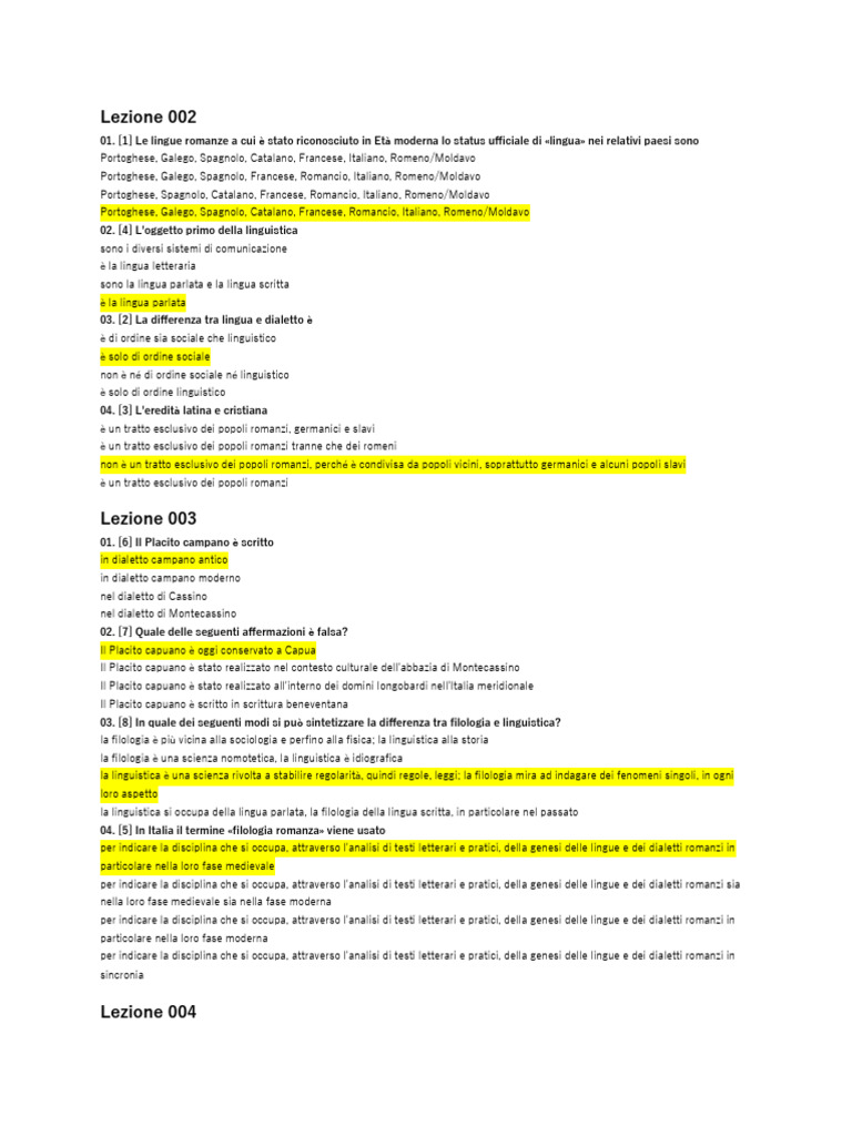 01. [1] Le lingue romanze a cui è stato riconosciuto in Età moderna lo status ufficiale di «lingua» nei relativi paesi sono