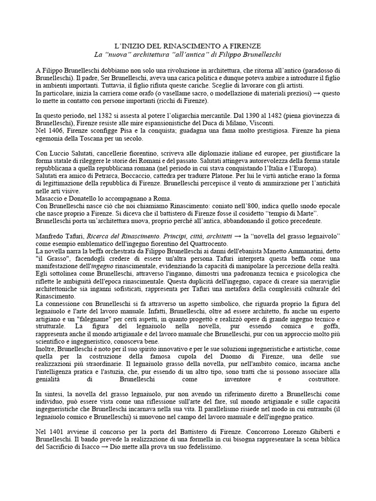 di legittimazione della repubblica di Firenze. Brunelleschi percepisce il vento di ammirazione per l’antichità
