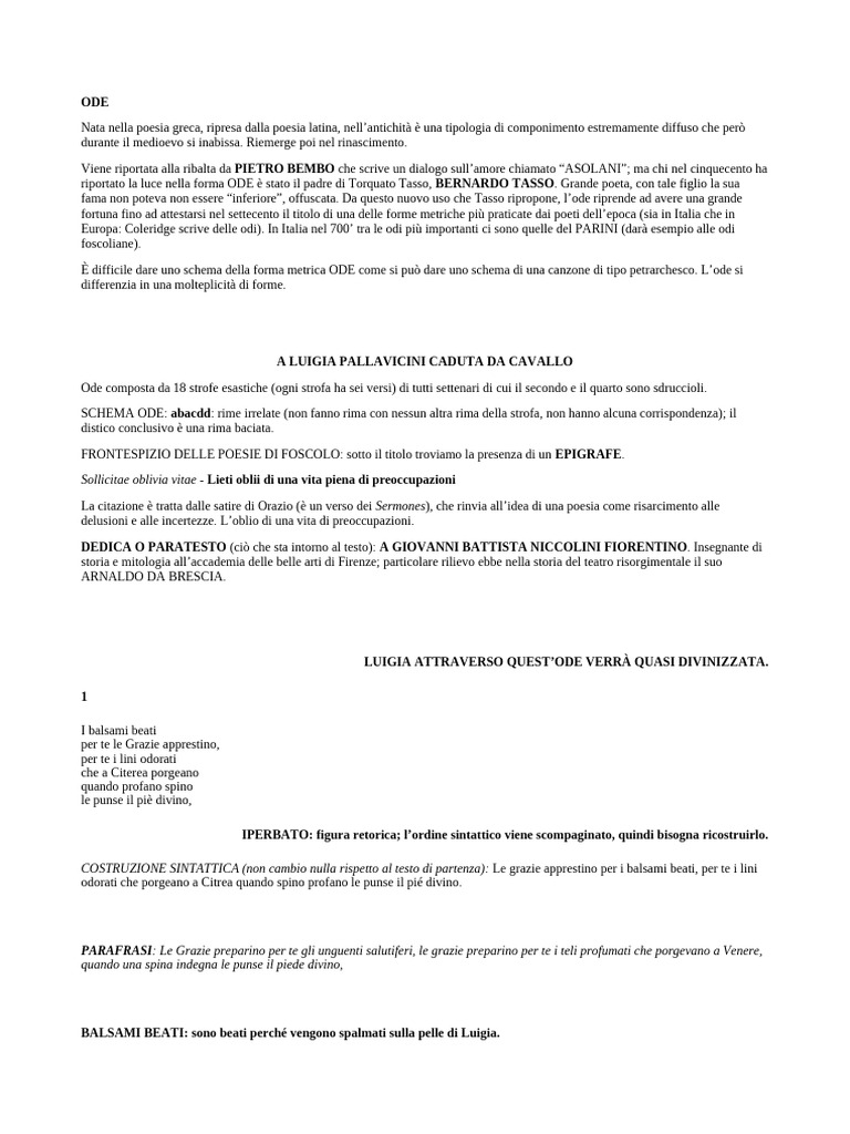 Odi Di Ugo Foscolo