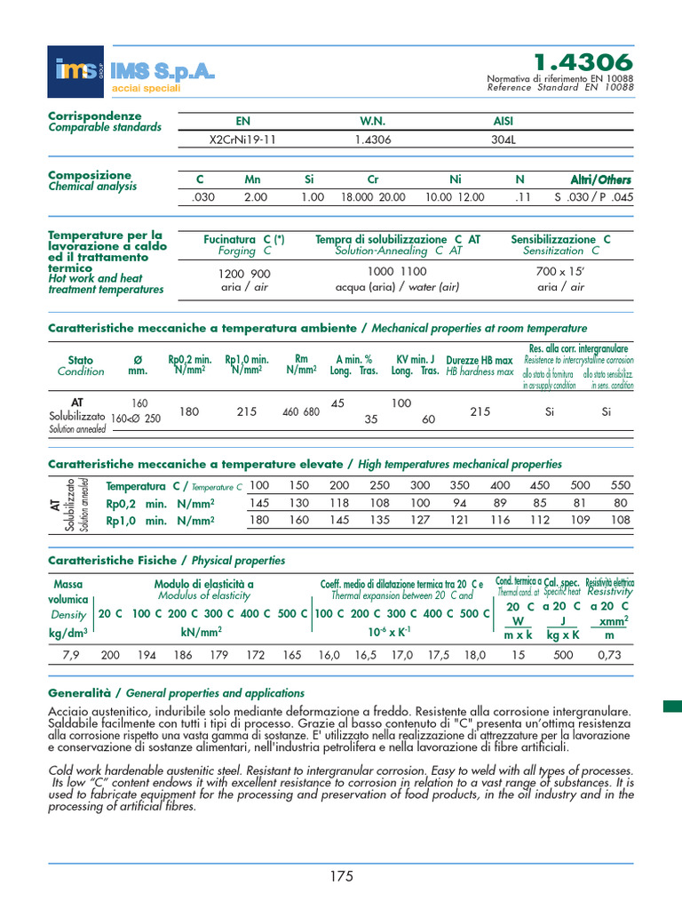 Acciaio austenitico, induribile solo mediante deformazione a freddo. Resistente alla corrosione intergranulare.