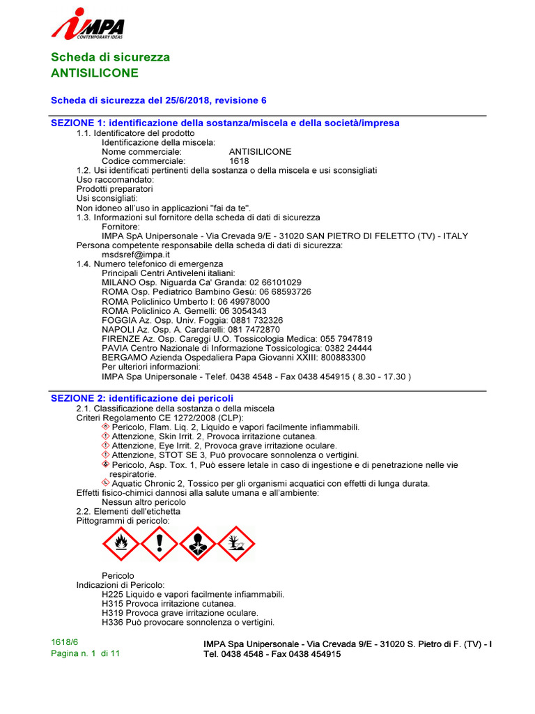 Scheda di sicurezza del 25/6/2018, revisione 6