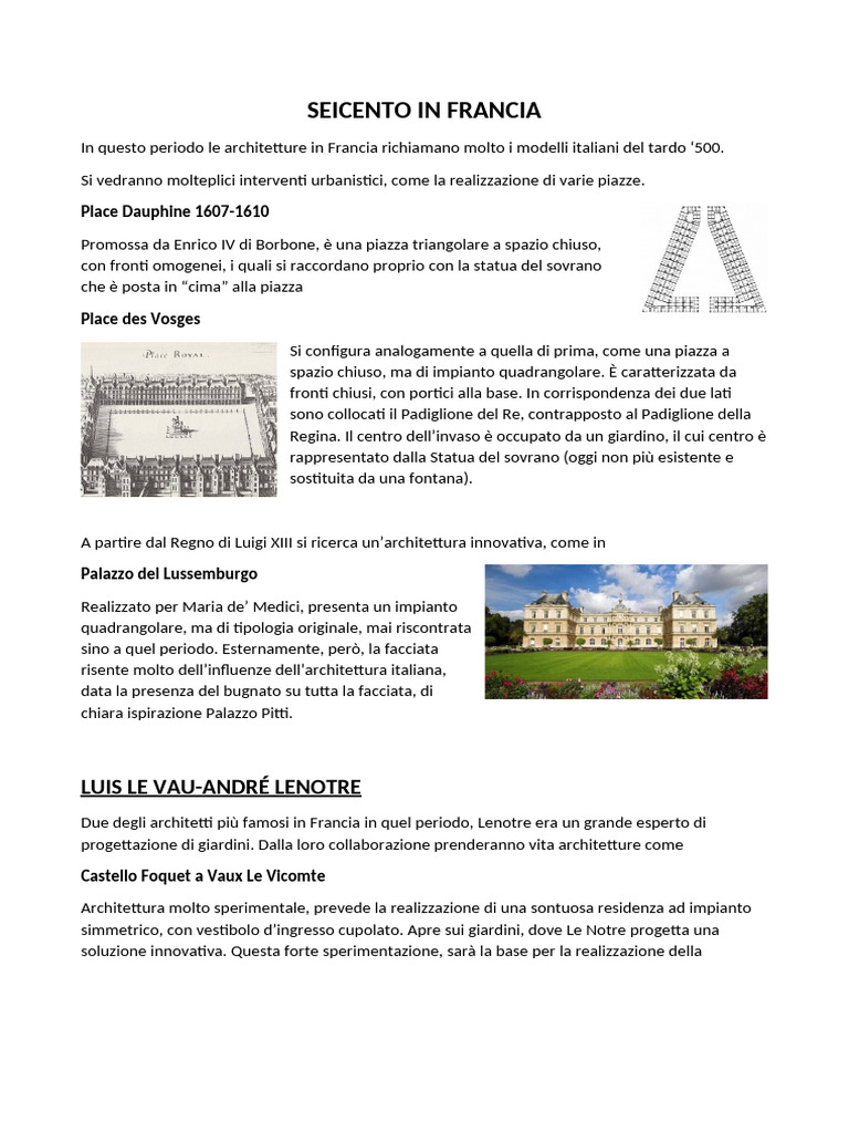 In questo periodo le architetture in Francia richiamano molto i modelli italiani del tardo ‘500.