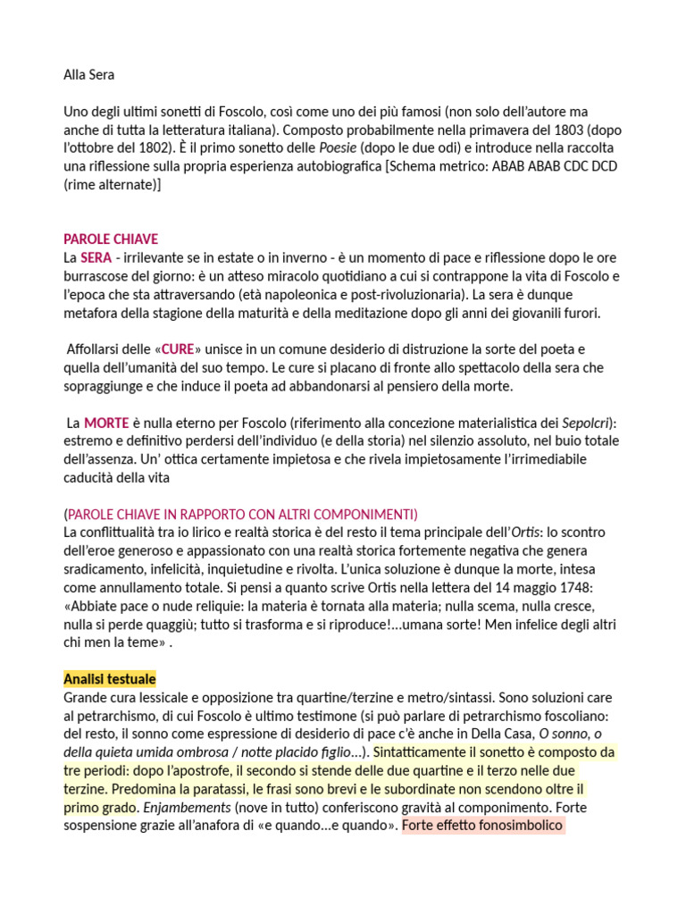 È l’ultimo dei sonetti di Foscolo, composto tra la primavera e l’estate del 1803, è dedicato al