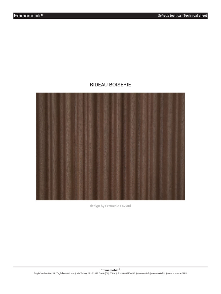 Rideau boiserie è un sistema di pannelli realizzati in legno curvato. Rideau Boiserie is a system of panels made of bent wood. The