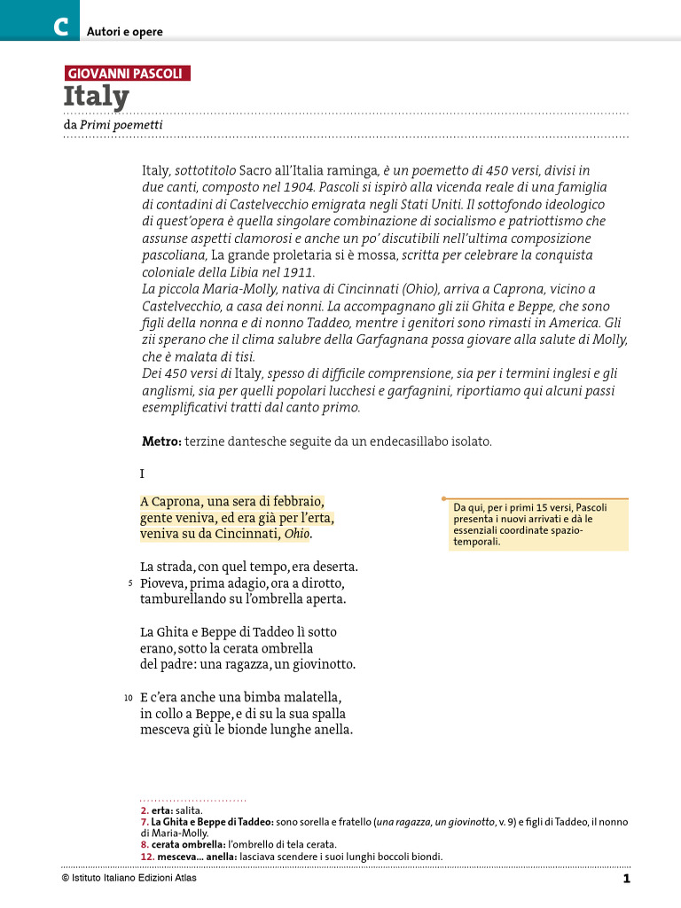 Dei 450 versi di Italy, spesso di difficile comprensione, sia per i termini inglesi e gli