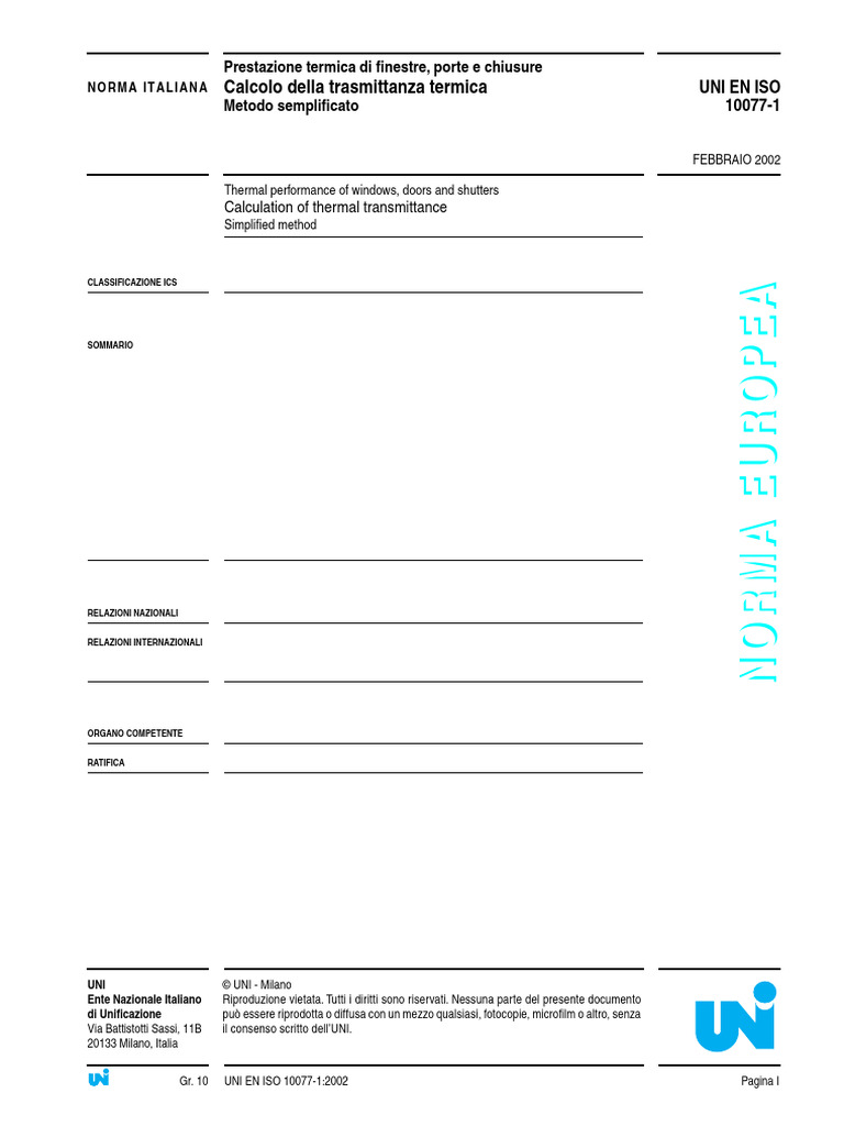 Gr. 10 UNI EN ISO 10077-1:2002 Pagina I