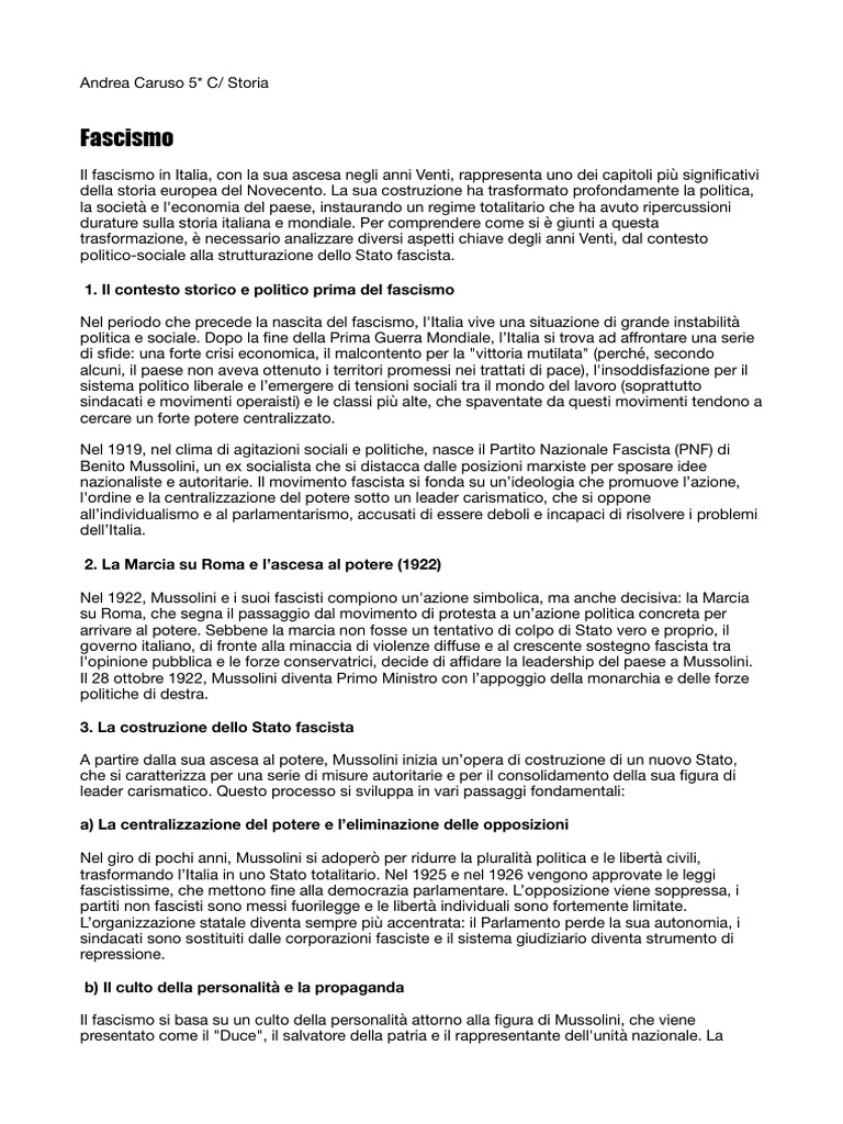 Il fascismo in Italia, con la sua ascesa negli anni Venti, rappresenta uno dei capitoli più signi cativi