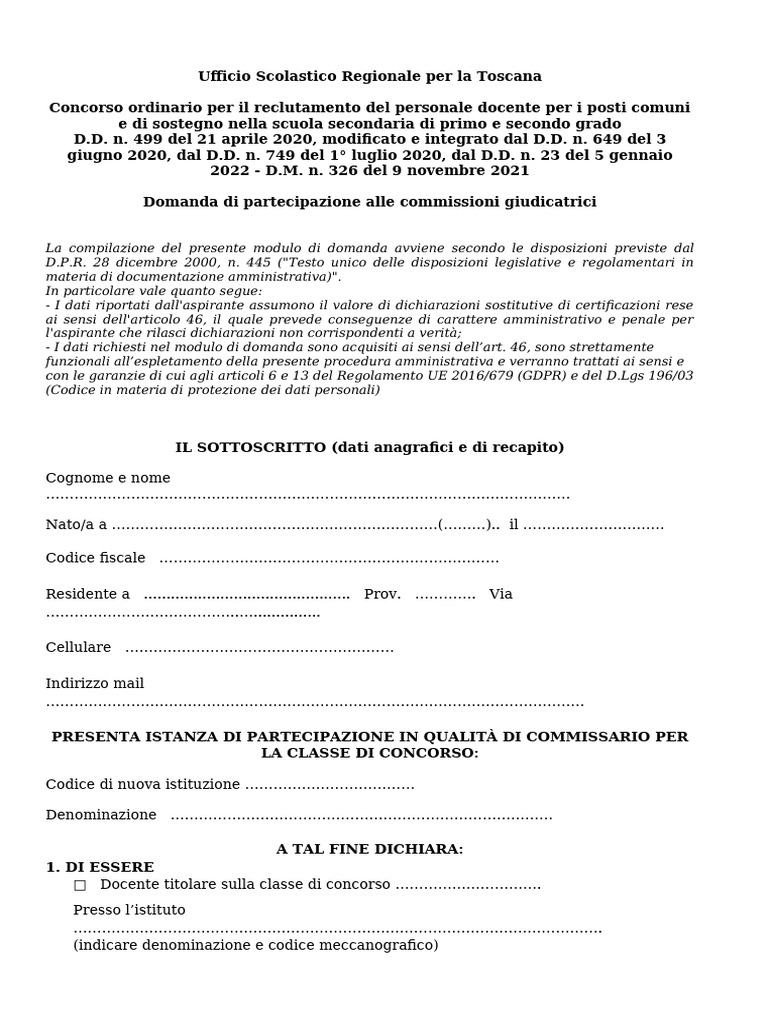 - I dati richiesti nel modulo di domanda sono acquisiti ai sensi dell’art. 46, sono strettamente