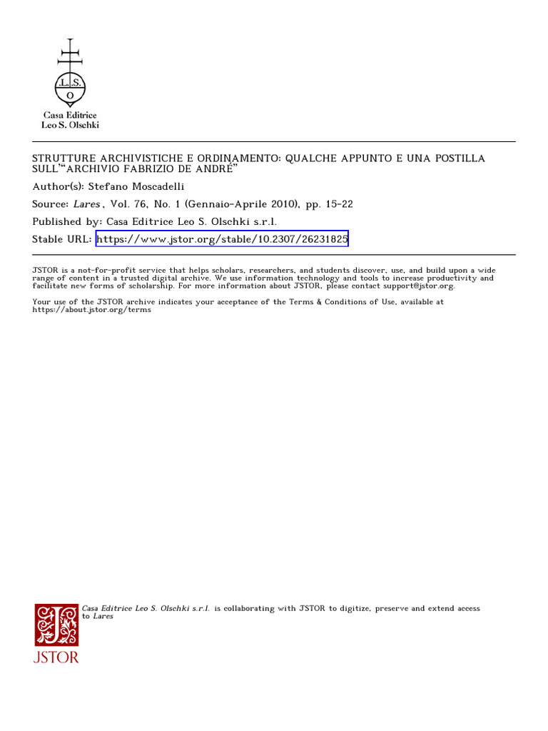 Source: Lares , Vol. 76, No. 1 (Gennaio-Aprile 2010), pp. 15-22