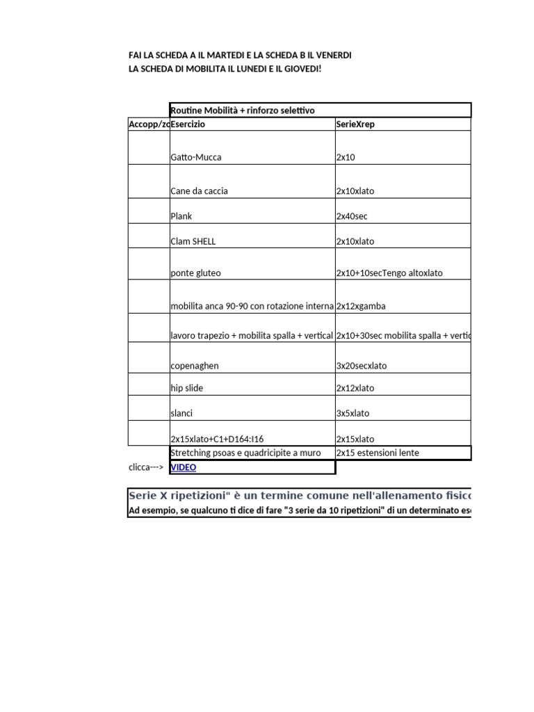 alterna nella settimana la scheda 3 volte esempio sett 1 scheda a lunedi b mercoledi a venerdi. settimana 2 sched