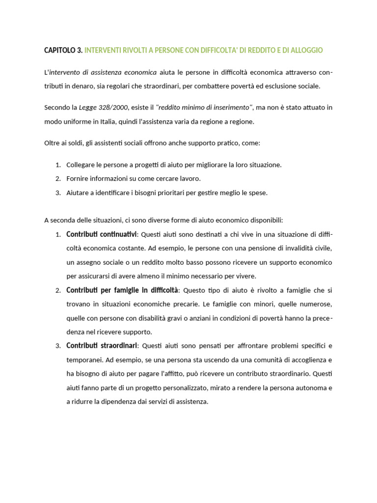 1. Contributi continuativi: Questi aiuti sono destinati a chi vive in una situazione di diffi-