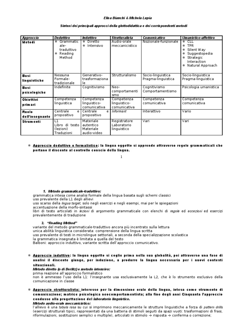 Approccio deduttivo o formalistico: la lingua oggetto si apprende attraverso regole grammaticali che portano il discente al controllo conscio della lingua. 1