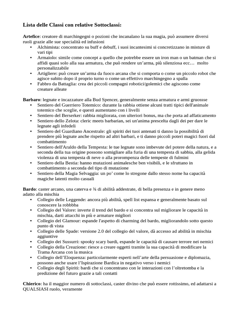 Chierico: ha il maggior numero di sottoclassi, caster divino che può essere rottissimo, ed adattarsi a