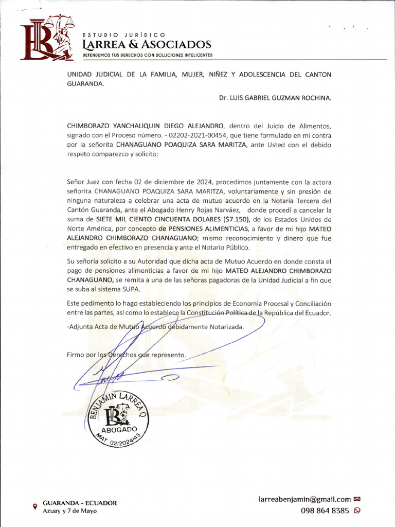 pago de pensiones alimenticias a favor de mi hijo MATEO ALEJANDRO CHIMBORAZO