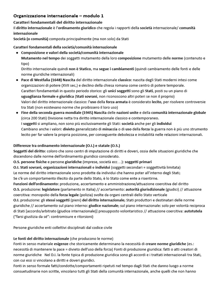 Organizzazione internazionale – modulo 1