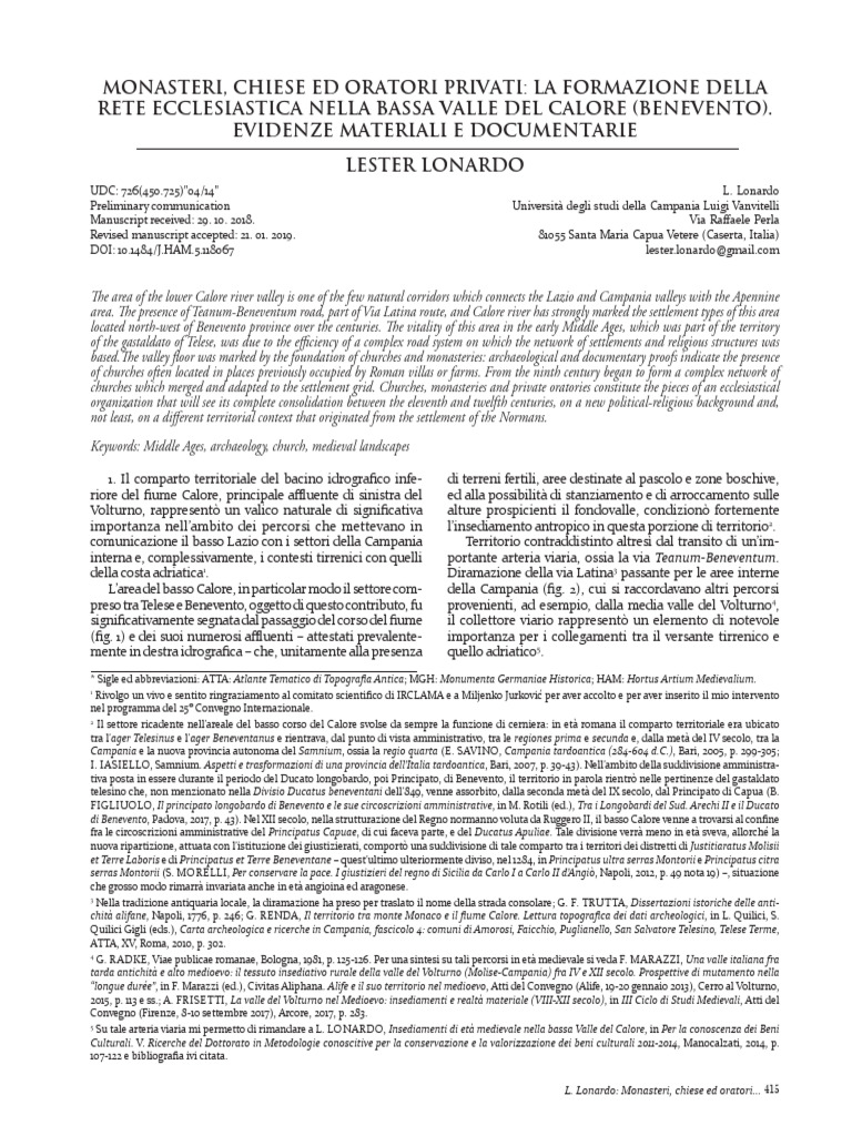 426 Hortus Artium Mediev. Vol. 25/2 415-426 L. Lonardo monasteri, chiese ed oratori...