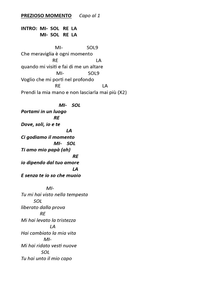 PREZIOSO MOMENTO Capo al 1
