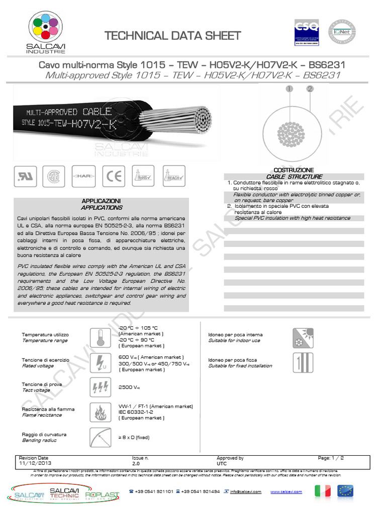 Multi-approved Style 1015 – TEW – H05V2-K/H07V2-K – BS6231