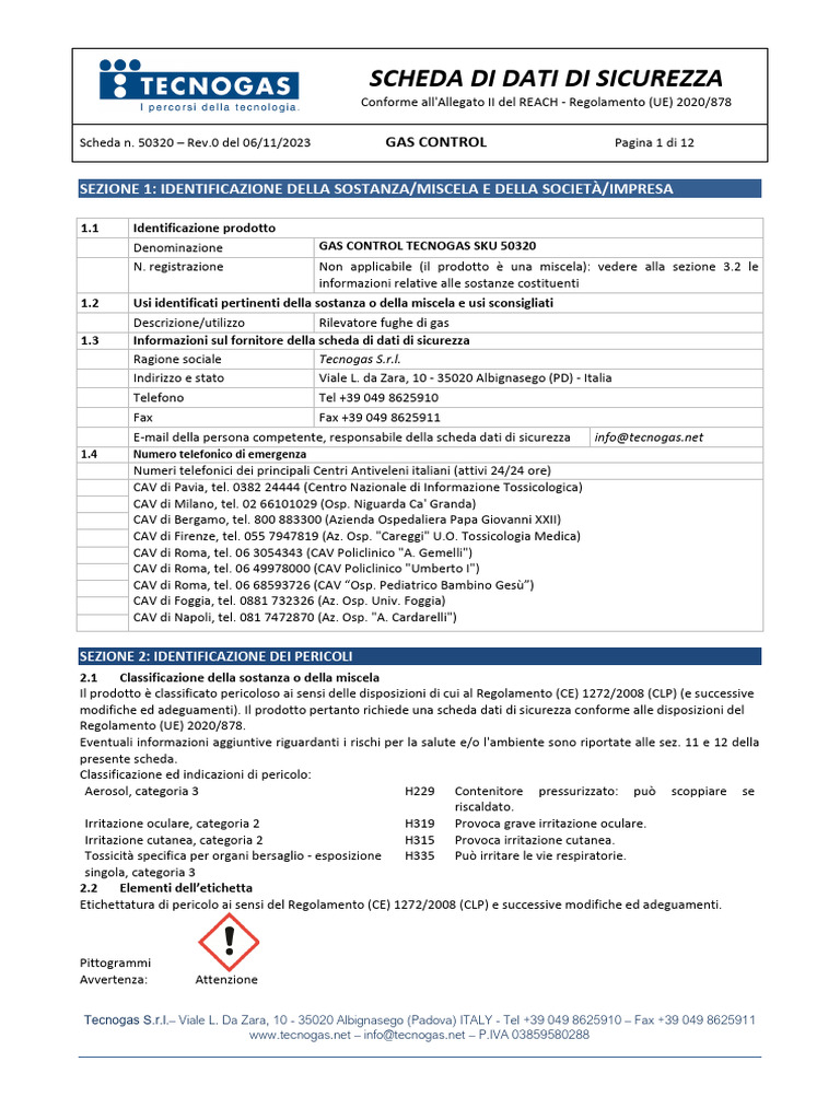 Scheda n. 50320 – Rev.0 del 06/11/2023 GAS CONTROL Pagina 1 di 12