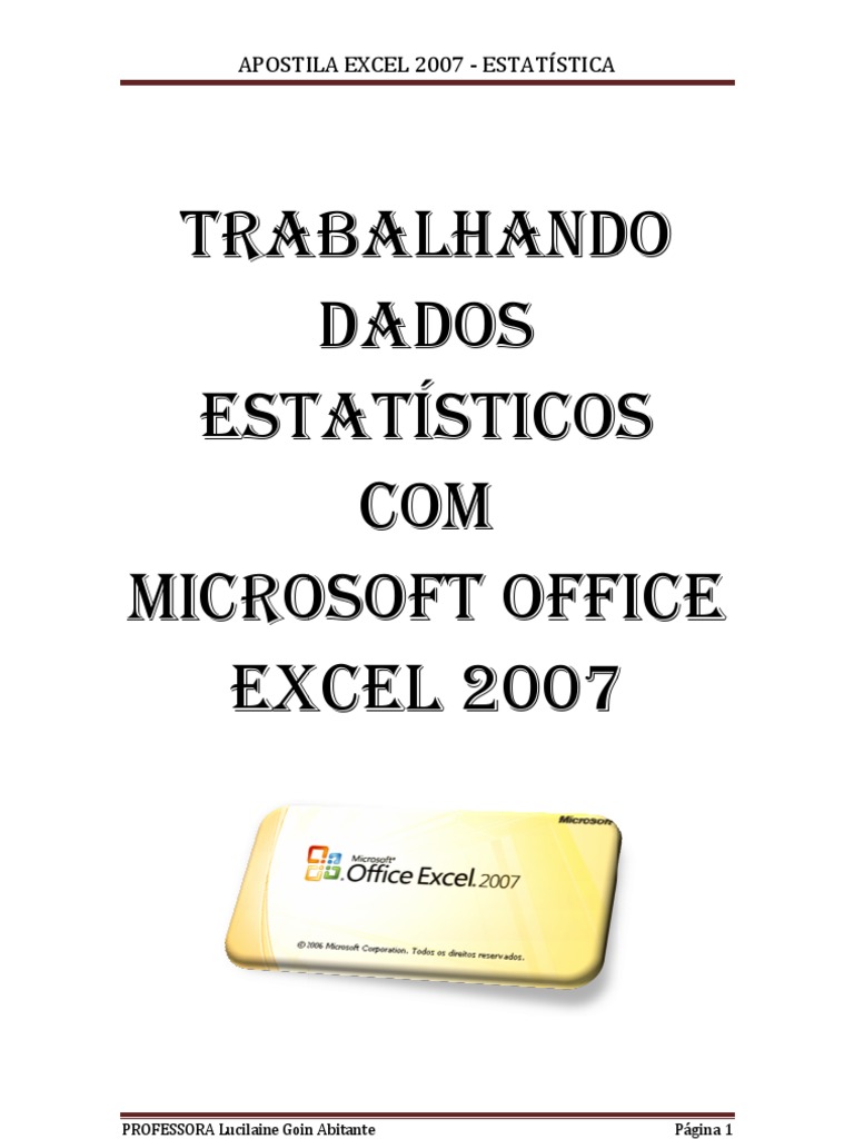 Figura 1: Janela inicial do Excel 2007. Uma das ferramentas mais importantes do Excel o suplemento de anlise estatstica. Ao clicar em DADOS, aparece ento bem direita na parte superior da janela o cone ANLISE DE DADOS, Figura 2.