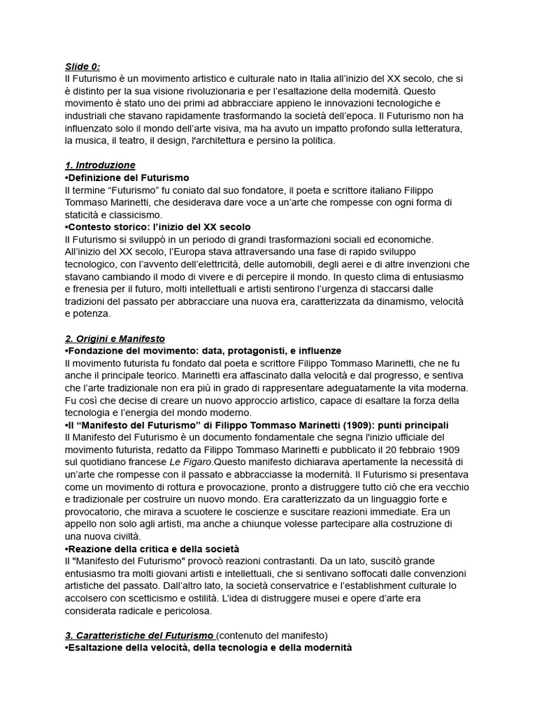 3. Caratteristiche del Futurismo (contenuto del manifesto)