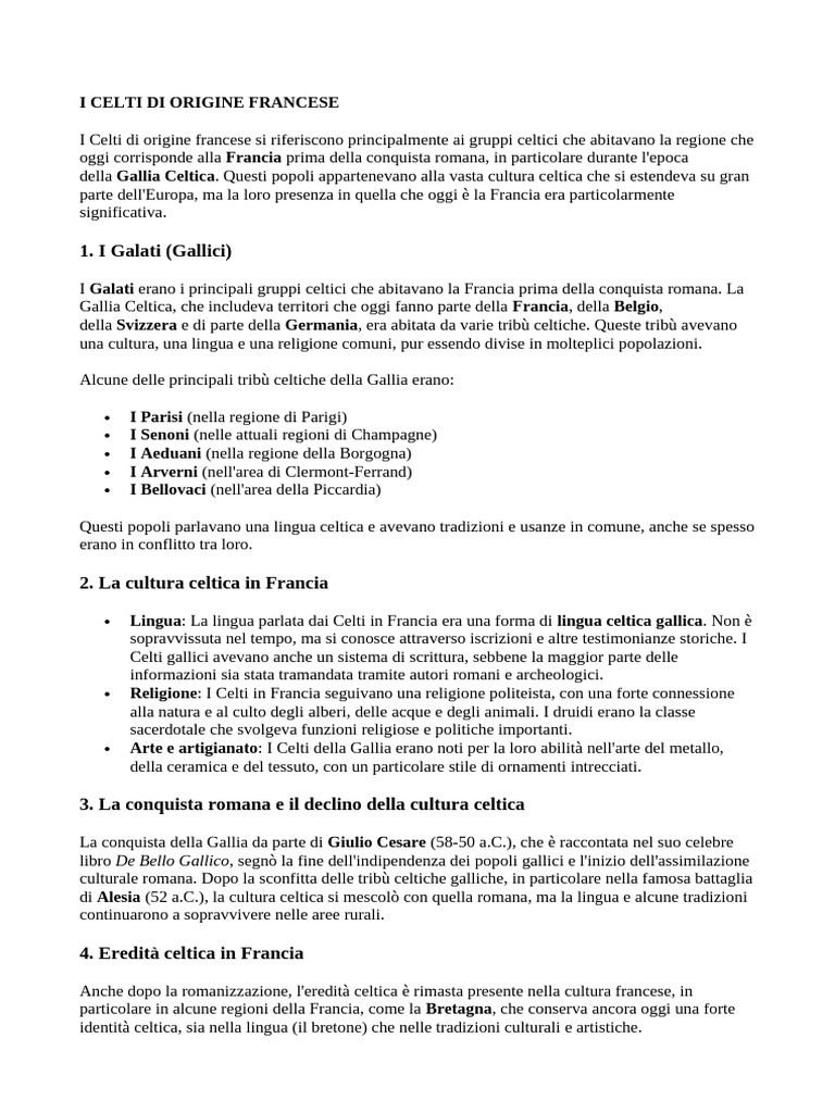 In sintesi, i Celti di origine francese erano i Galati, un gruppo di tribù che abitavano la Gallia prima