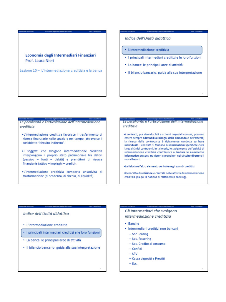 Università di Genova Economia degli Intermediari Finanziari Prof. Laura Nieri Università di Genova Economia degli Intermediari Finanziari Prof. Laura Nieri