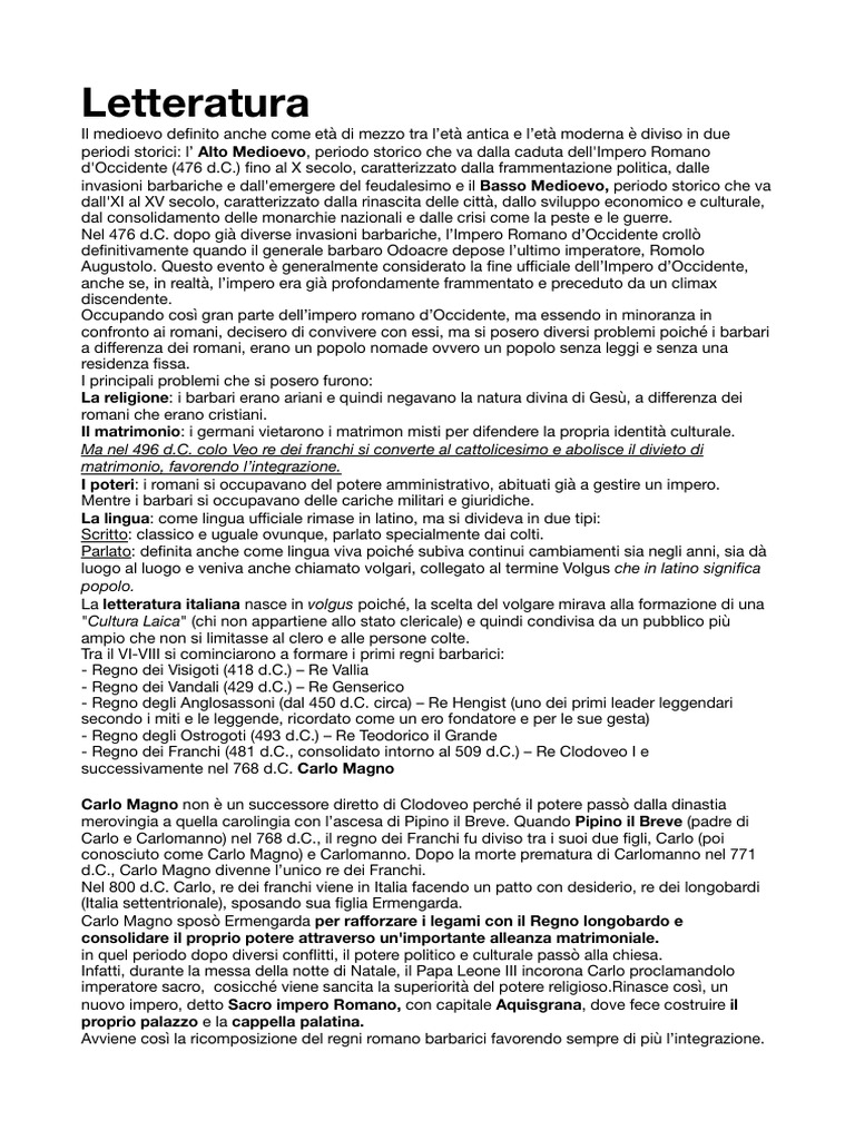 francia, dando vita alle letterature moderne d’Europa e segnando una rivoluzione culturale.