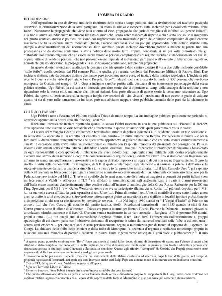 Roma e alla Procura Militare di Padova contro Pregelj 102. “Per avvalorare le accuse contro Pregelj”, leggiamo, Fabbri cita la