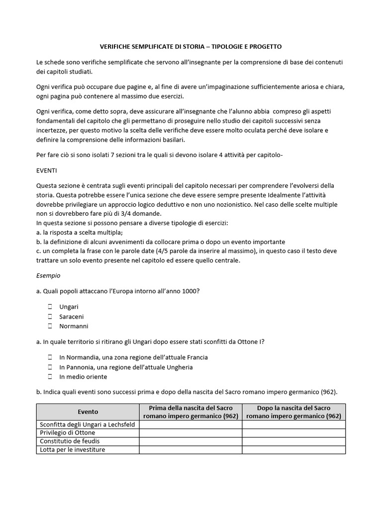 VERIFICHE SEMPLIFICATE DI STORIA – TIPOLOGIE E PROGETTO