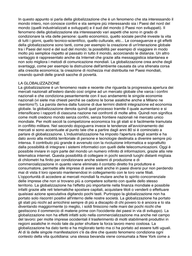 diverse dalla mia, sentirmi parte del mondo. Economia globalizzata che genera molte