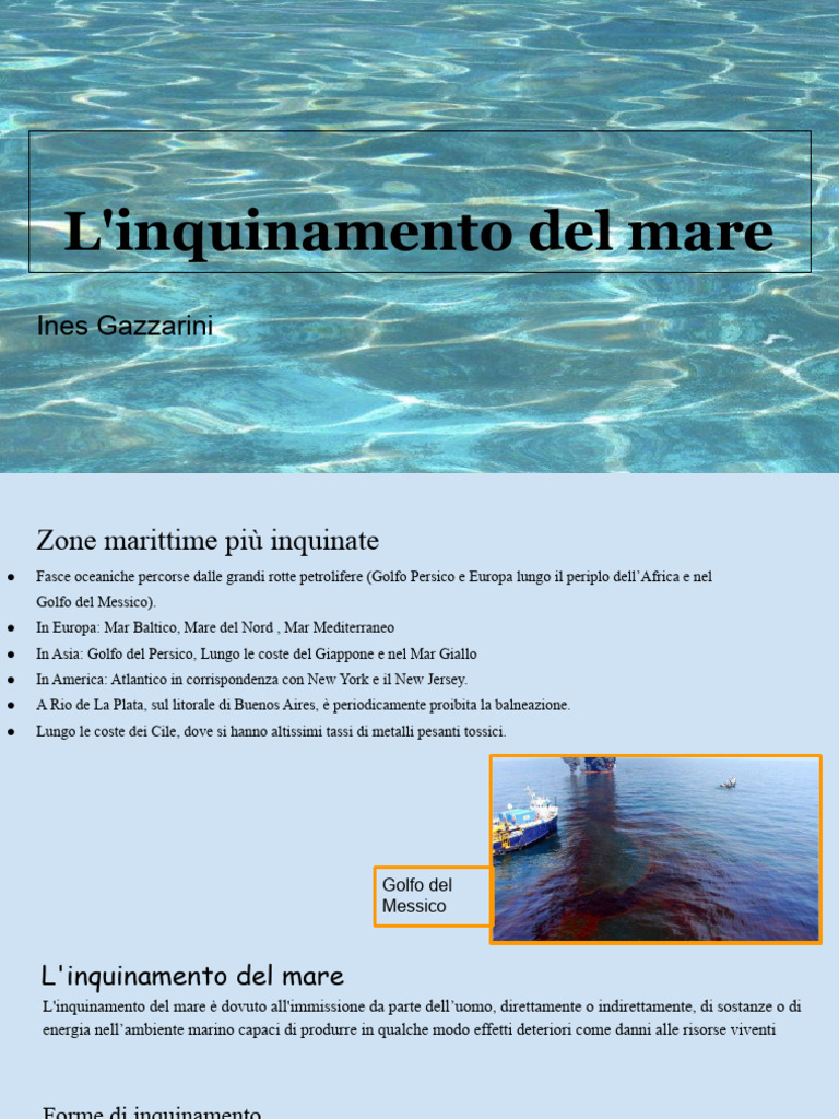 L'inquinamento del mare è dovuto all'immissione da parte dell’uomo, direttamente o indirettamente, di sostanze o di