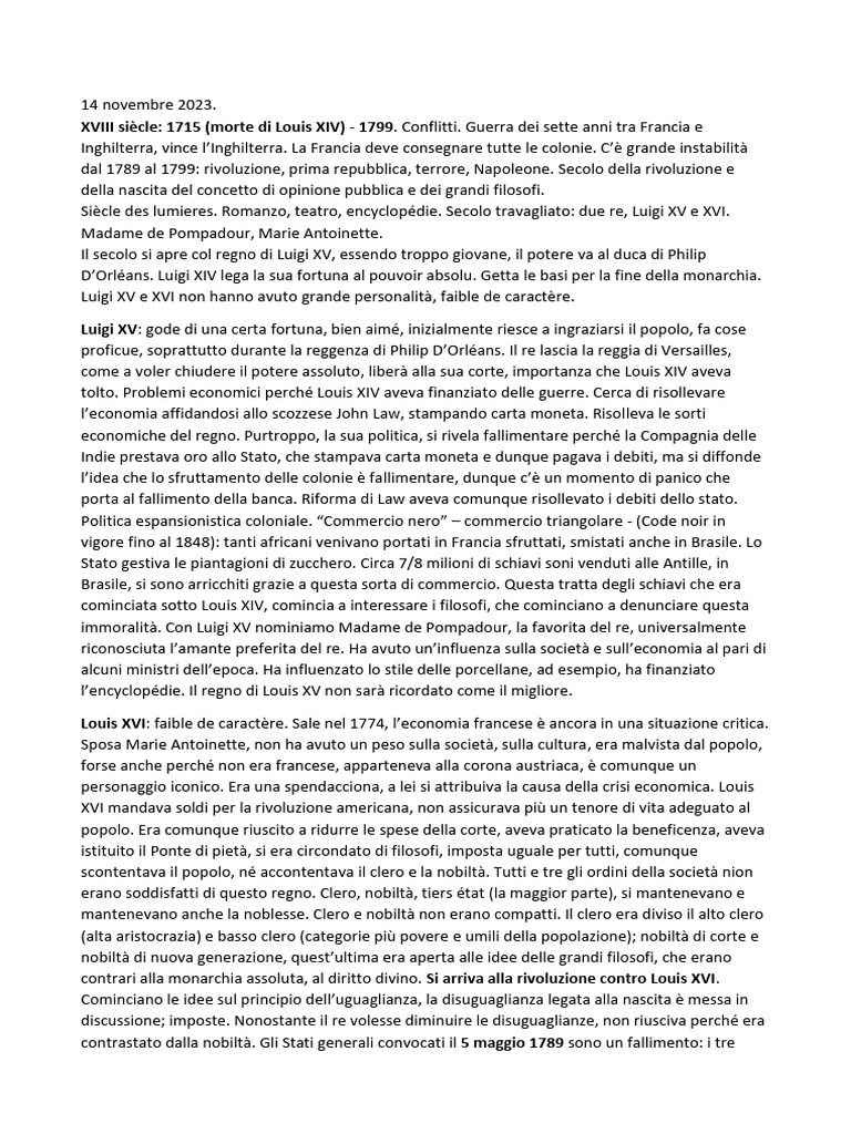 Siècle des lumieres. Romanzo, teatro, encyclopédie. Secolo travagliato: due re, Luigi XV e XVI.