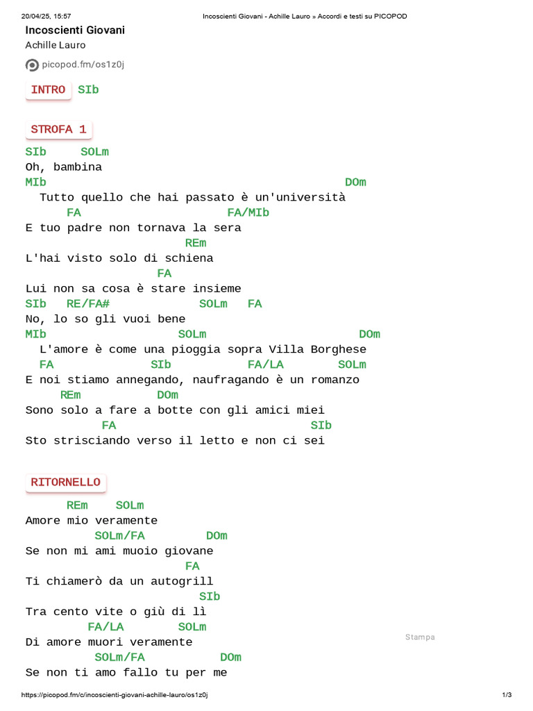 20/04/25, 15:57 Incoscienti Giovani - Achille Lauro » Accordi e testi su PICOPOD