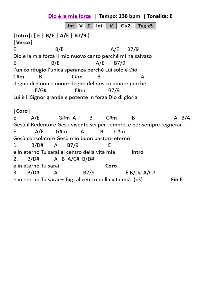 Dio è la mia forza | Tempo: 138 bpm | Tonalità: E