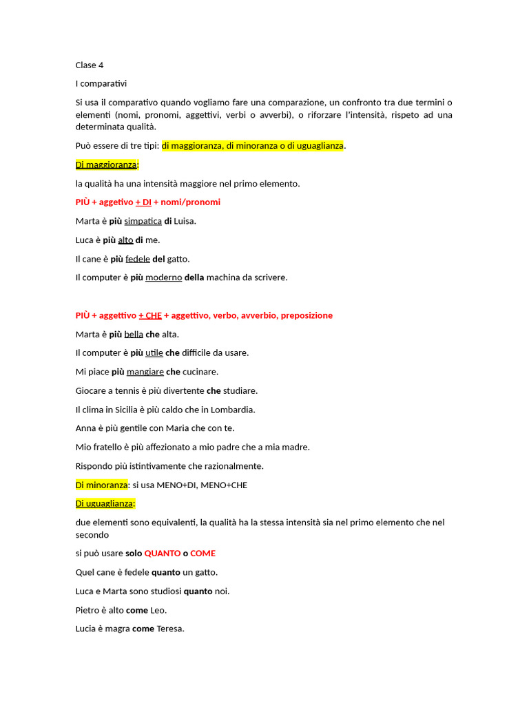 Si usa il comparativo quando vogliamo fare una comparazione, un confronto tra due termini o
