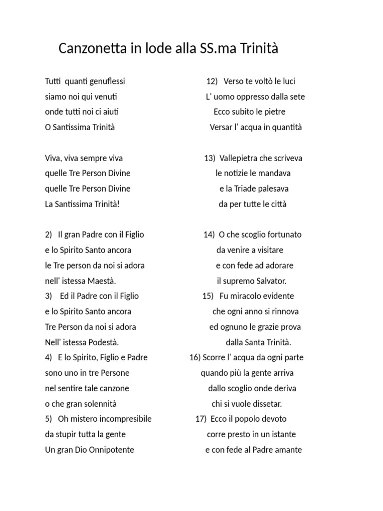 4) E lo Spirito, Figlio e Padre 16) Scorre l' acqua da ogni parte
