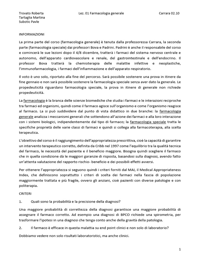 Trovato Roberta Lez. 01 Farmacologia generale Carrara 02.10