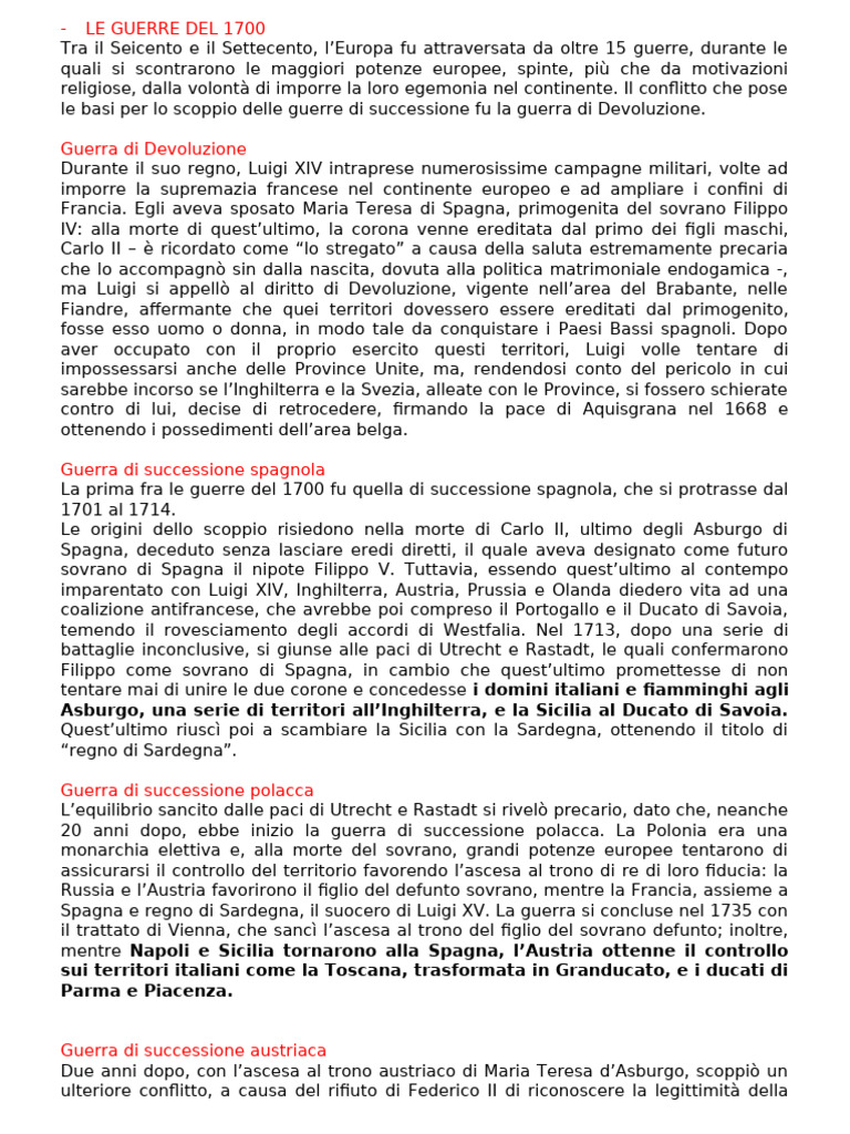 - LE GUERRE DEL 1700