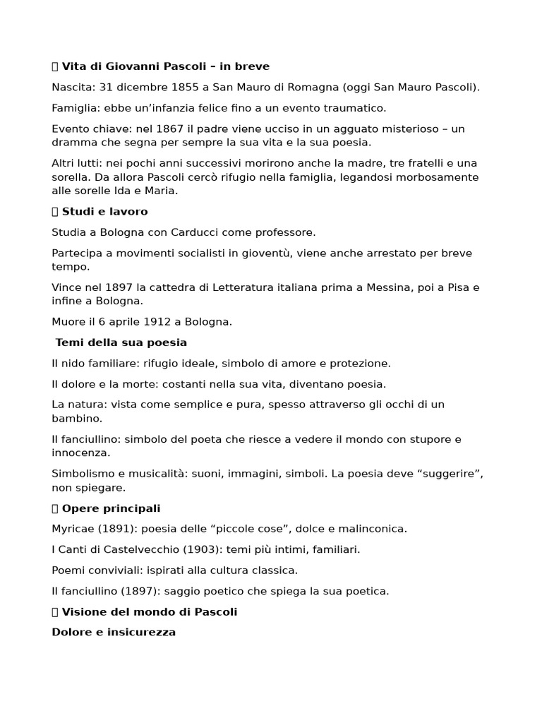 👶 Il fanciullino è il cuore della sua poetica: sente le cose semplici e profonde