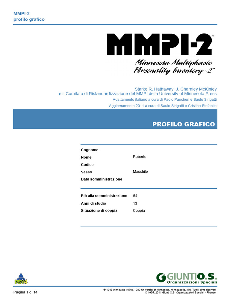 e il Comitato di Ristandardizzazione del MMPI della University of Minnesota Press