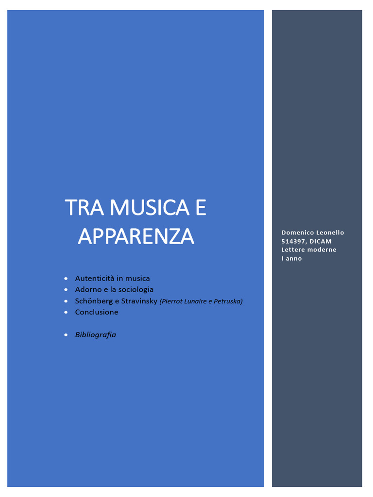 Theodor W. Adorno, On popular music, New York, Institute of Social Research, 1948; M. Santoro