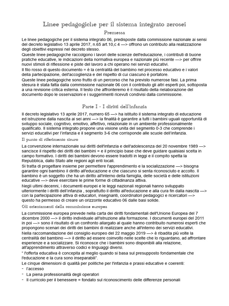 ed istruzione dalla nascita ai sei anni —> la finalità è garantire a tutti i bambini uguali opportunità di