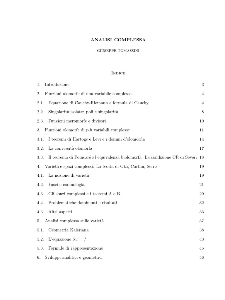 L’Analisi Complessa, nell’accezione ormai in uso, è dunque un vasto settore della ricer-