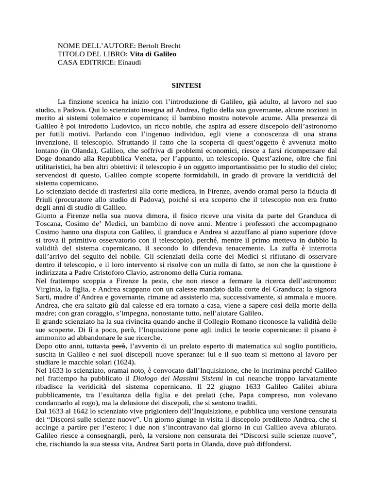 non ha eroi”, riferendosi chiaramente al presunto tradimento di Galileo; il suo non è certo un