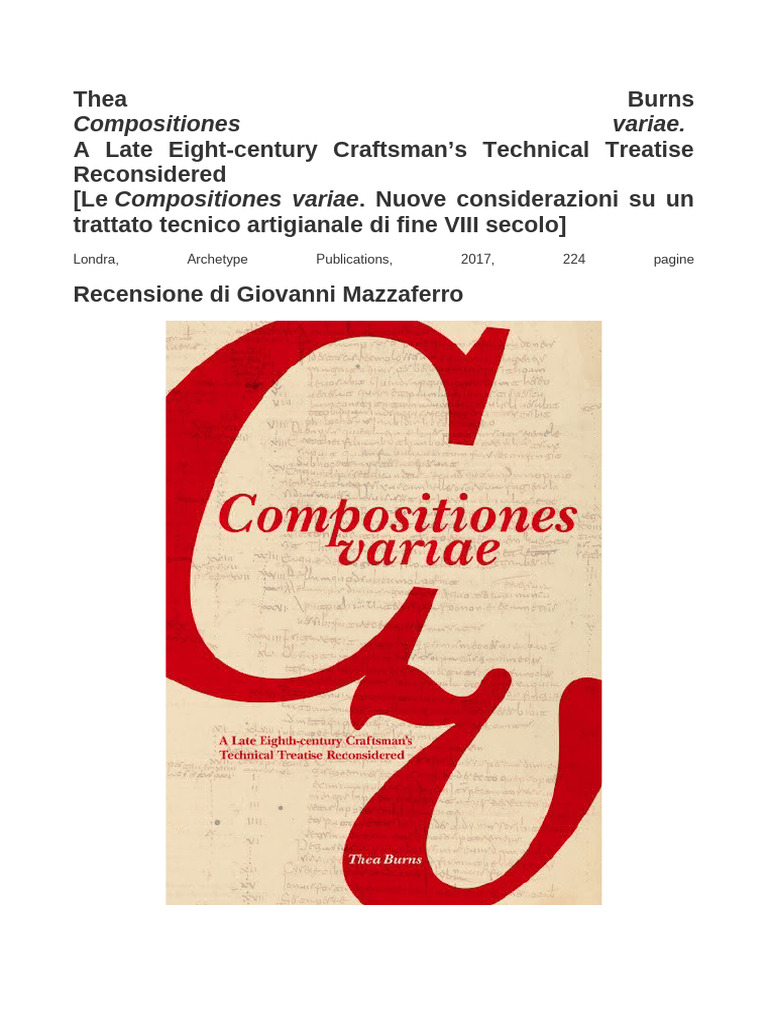 parlando delle Compositiones variae, l’autrice le definisca come “a non-literary text” (“un testo non