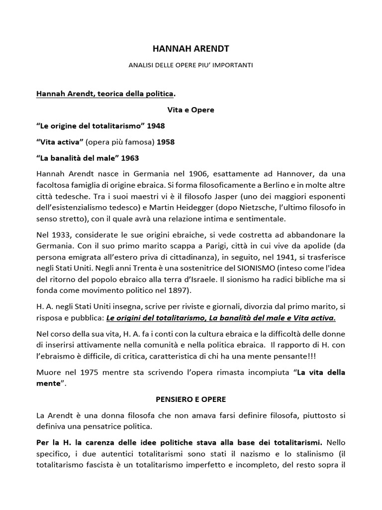 Per la H. la carenza delle idee politiche stava alla base dei totalitarismi. Nello