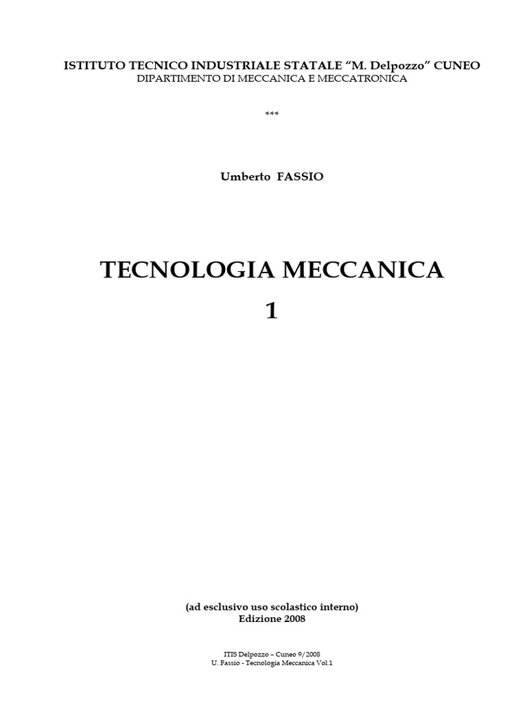 La stesura completa del testo prevede i seguenti macroargomenti: la Tecnologia delle